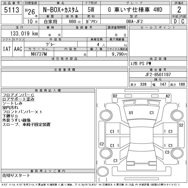 Honda N BOX PLUS с аукциона Японии CAA Tohoku лот № 5113