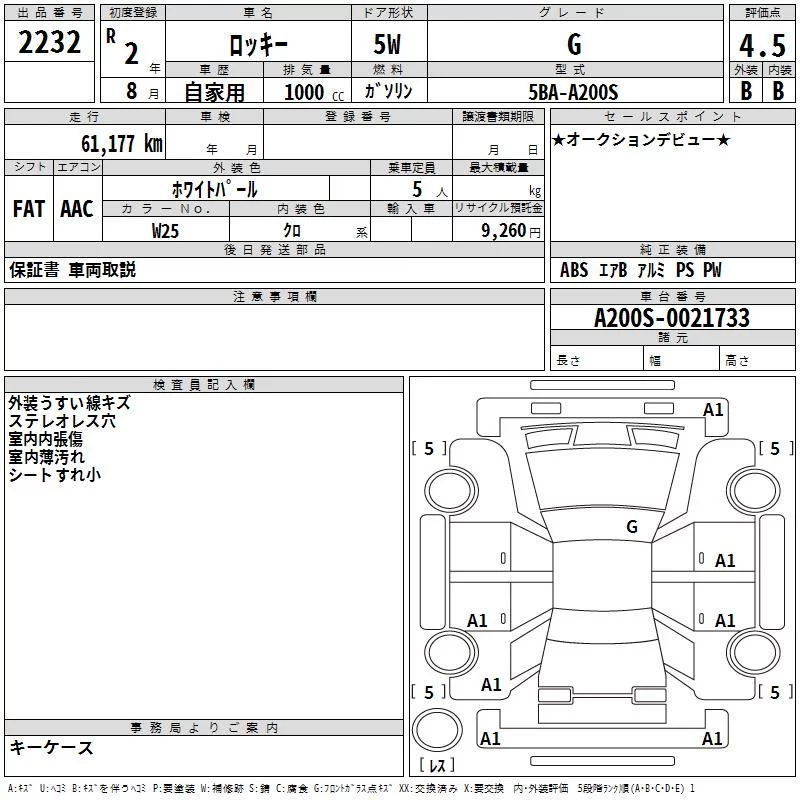 Daihatsu ROCKY с аукциона Японии TAA Kyushu лот № 2232
