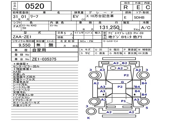 Nissan LEAF с аукциона Японии NAA Fukuoka лот № 520