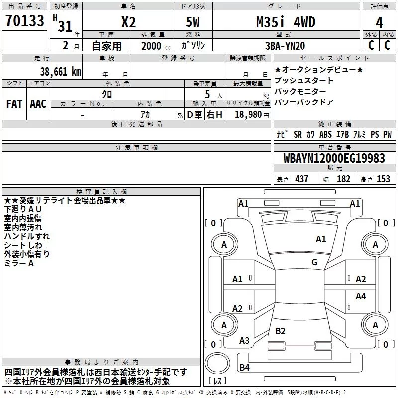 BMW X2 с аукциона Японии TAA Shikoku лот № 70133
