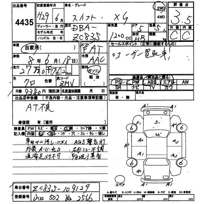 Suzuki SWIFT с аукциона Японии JU Yamaguchi лот № 4435