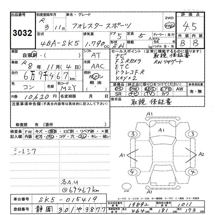 Subaru FORESTER с аукциона Японии JU Shizuoka лот № 3032