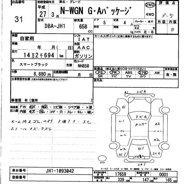 Honda N WGN с аукциона Японии JU Fukui лот № 31