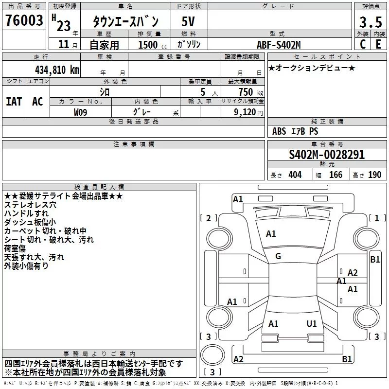 Toyota TOWN ACE VAN с аукциона Японии TAA Shikoku лот № 76003