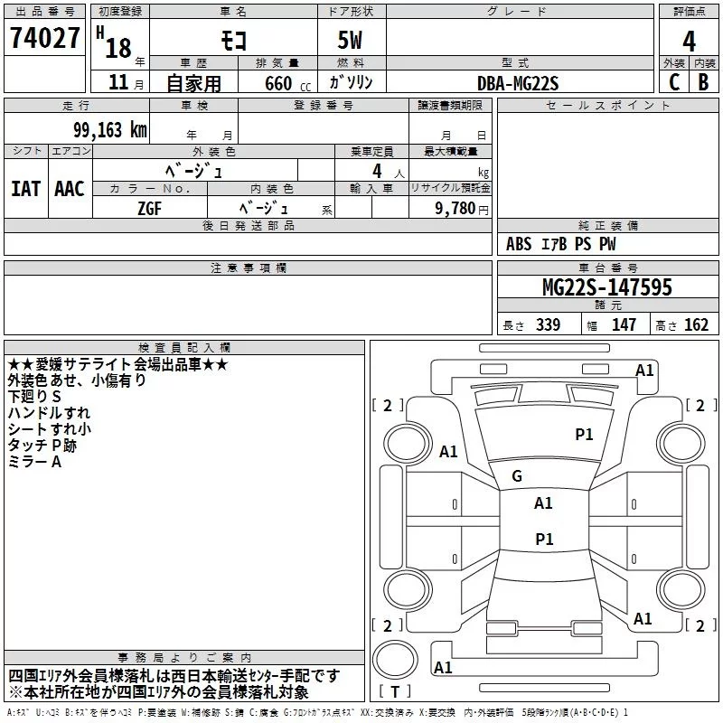 Nissan MOCO с аукциона Японии TAA Shikoku лот № 74027