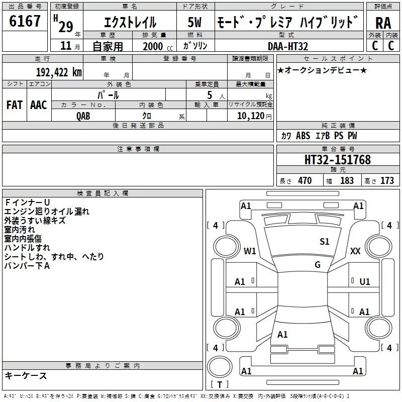 Nissan X-TRAIL с аукциона Японии TAA Kyushu лот № 6167