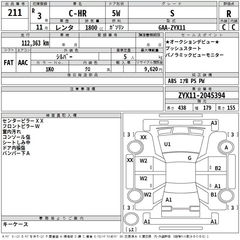 Toyota C-HR с аукциона Японии TAA Kyushu лот № 211