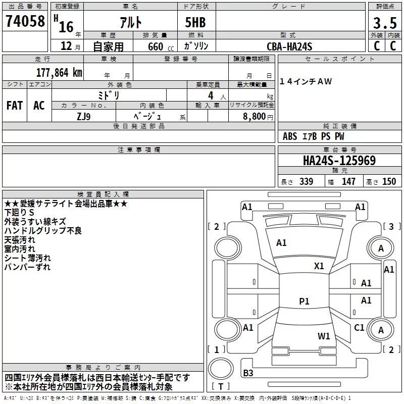 Suzuki ALTO с аукциона Японии TAA Shikoku лот № 74058