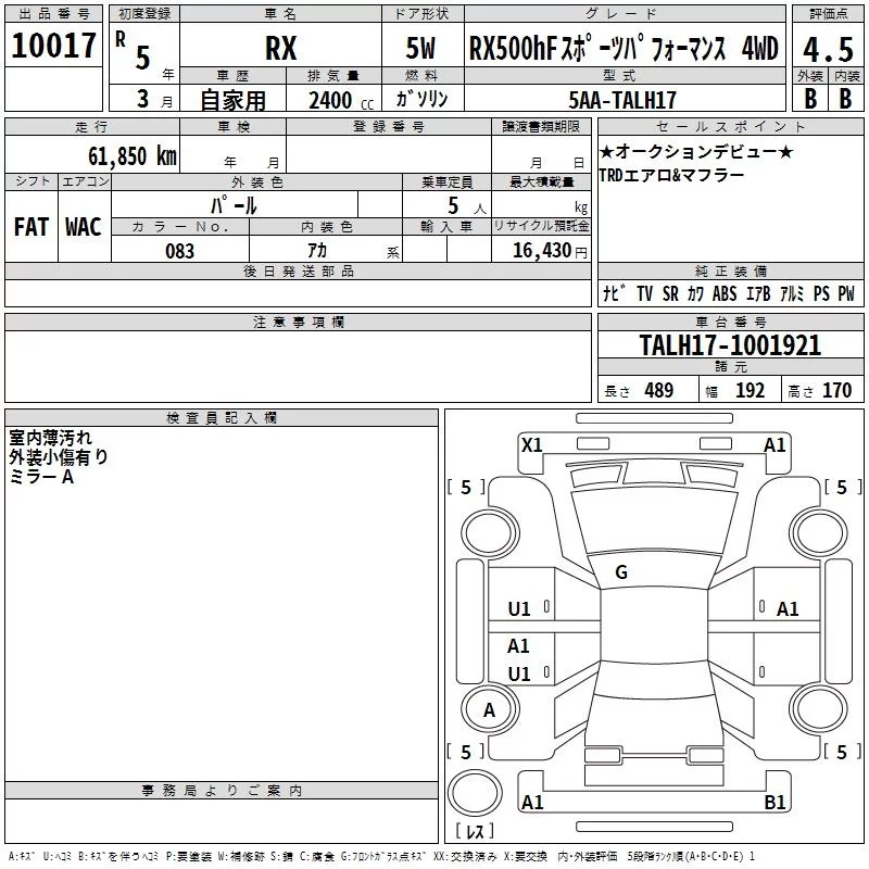 Lexus RX с аукциона Японии TAA Kinki лот № 10017