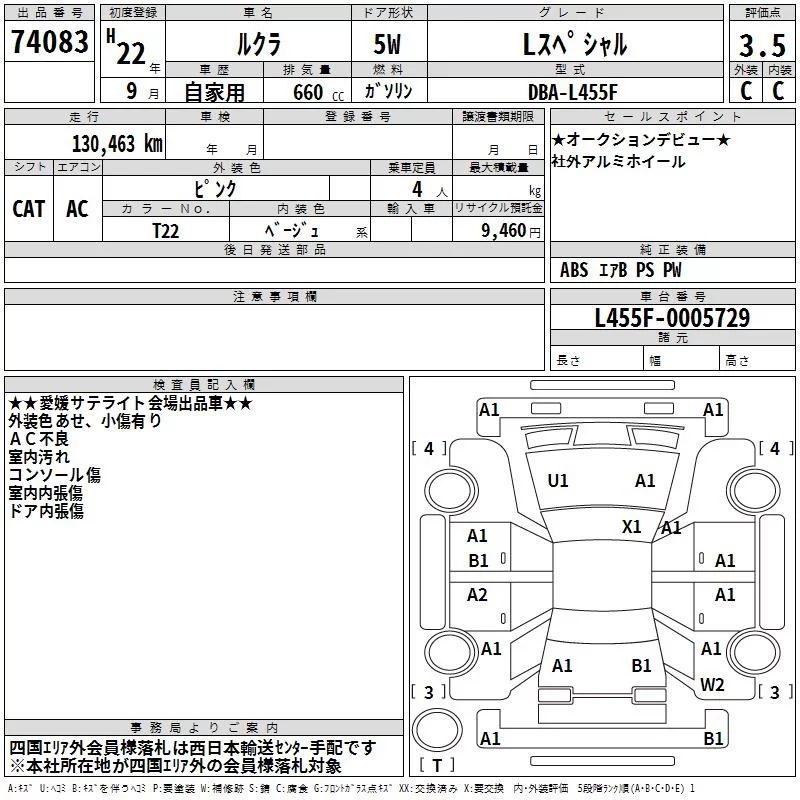 Subaru LUCRA с аукциона Японии TAA Shikoku лот № 74083