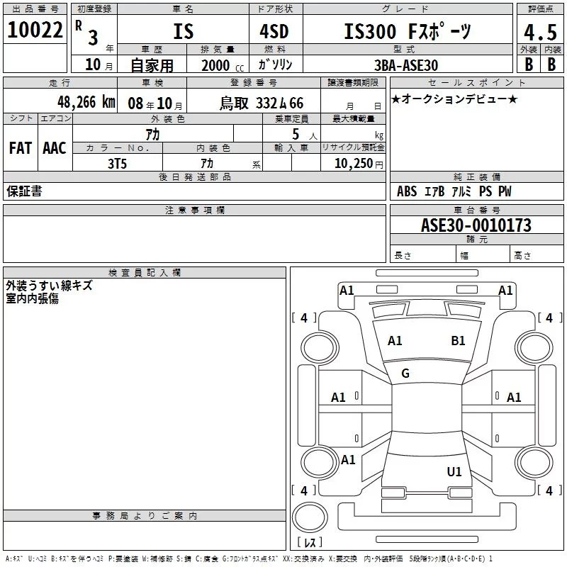 Lexus IS с аукциона Японии TAA Kinki лот № 10022