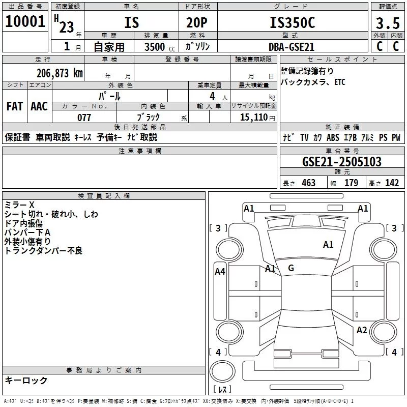 Lexus IS с аукциона Японии TAA Shikoku лот № 10001