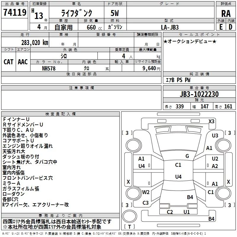Honda LIFE DUNK с аукциона Японии TAA Shikoku лот № 74119