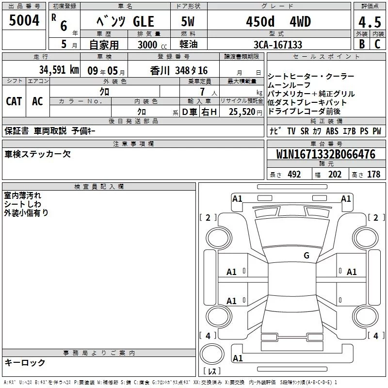 Mercedes-Benz GLE-Class с аукциона Японии TAA Shikoku лот № 5004
