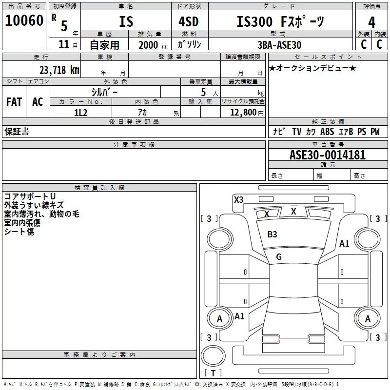 Lexus IS с аукциона Японии TAA Kinki лот № 10060