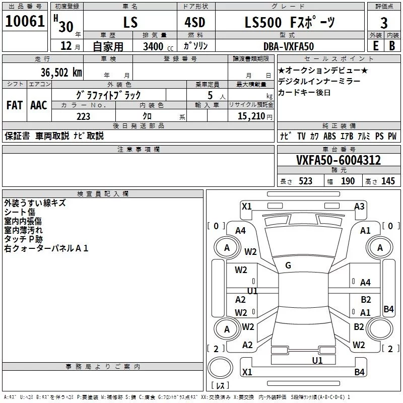 Lexus LS с аукциона Японии TAA Kinki лот № 10061