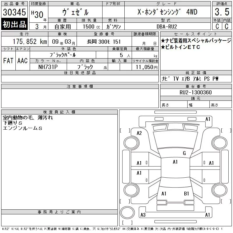 Honda VEZEL с аукциона Японии CAA Tokyo лот № 30345