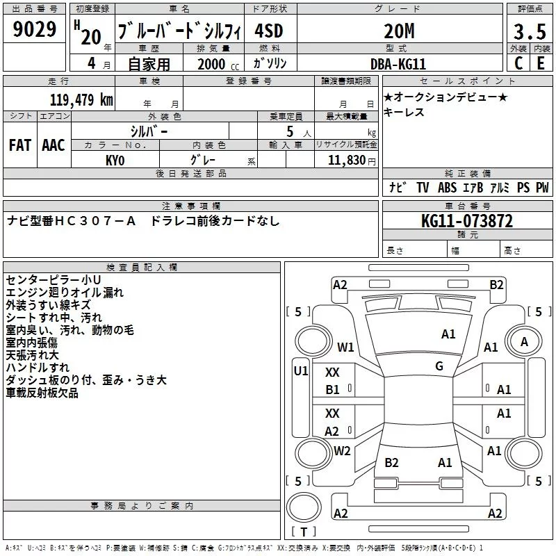 Nissan SYLPHY с аукциона Японии TAA Kyushu лот № 9029