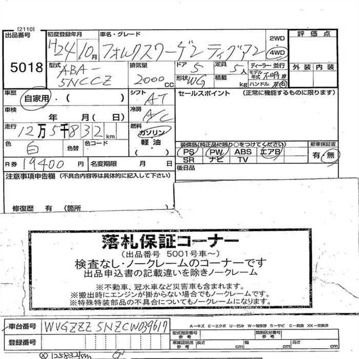 Volkswagen TIGUAN с аукциона Японии JU Nagano лот № 5018