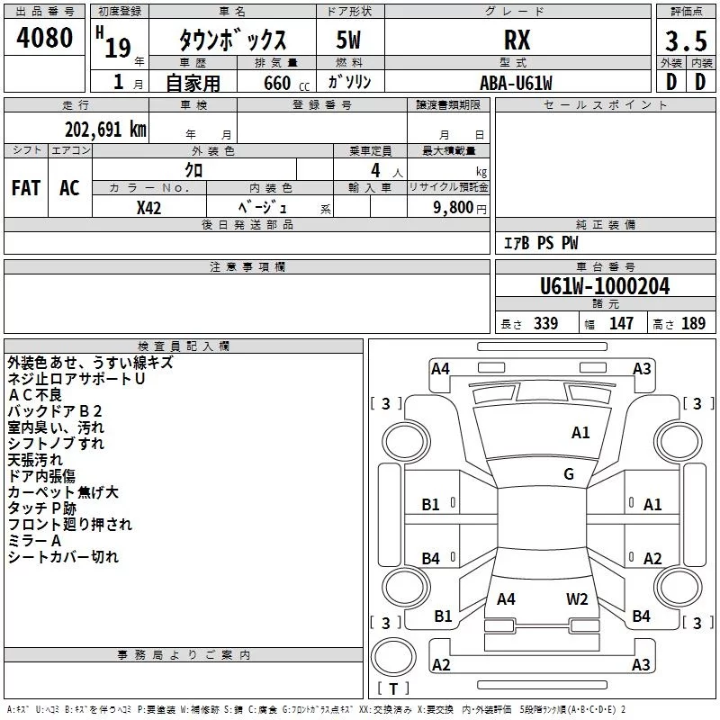 Mitsubishi TOWNBOX с аукциона Японии TAA Shikoku лот № 4080