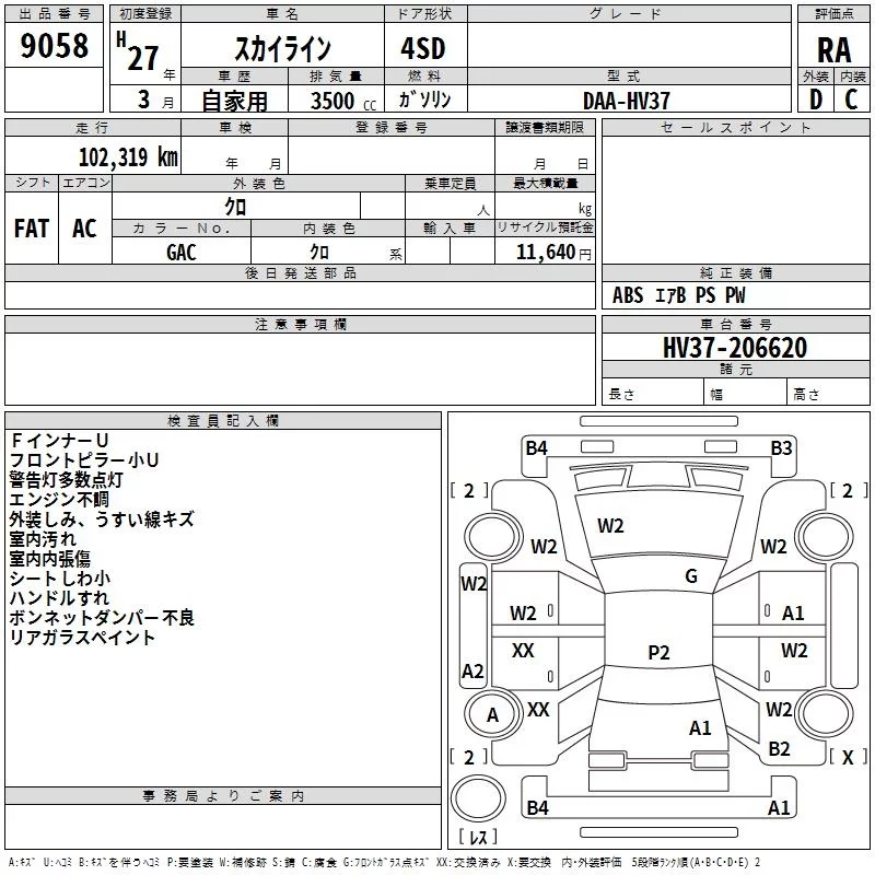 Nissan SKYLINE с аукциона Японии TAA Kyushu лот № 9058