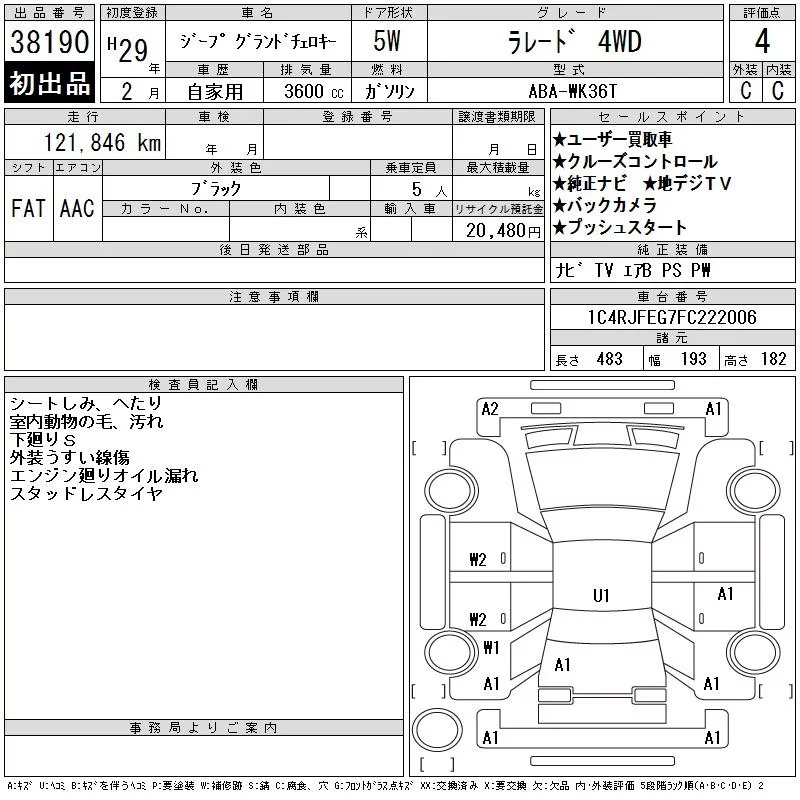 Chrysler JEEP GRAND CHEROKEE с аукциона Японии CAA Tokyo лот № 38190