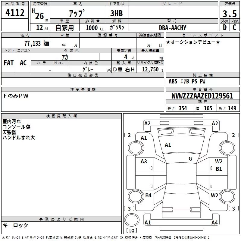 Volkswagen UP с аукциона Японии TAA Shikoku лот № 4112