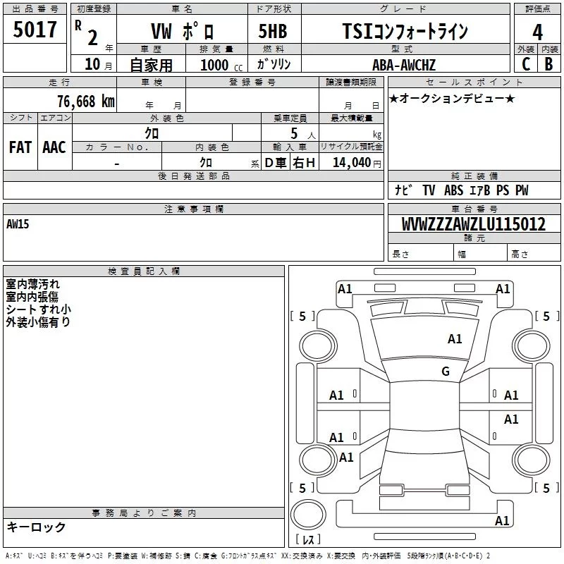 Volkswagen POLO с аукциона Японии TAA Hiroshima лот № 5017