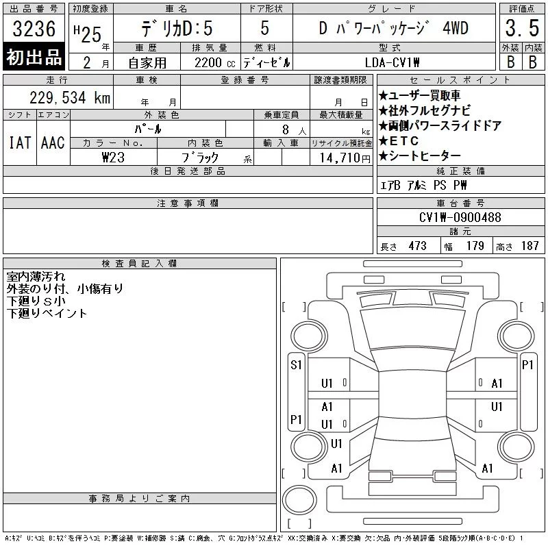 Mitsubishi DELICA D5 с аукциона Японии CAA Tohoku лот № 3236