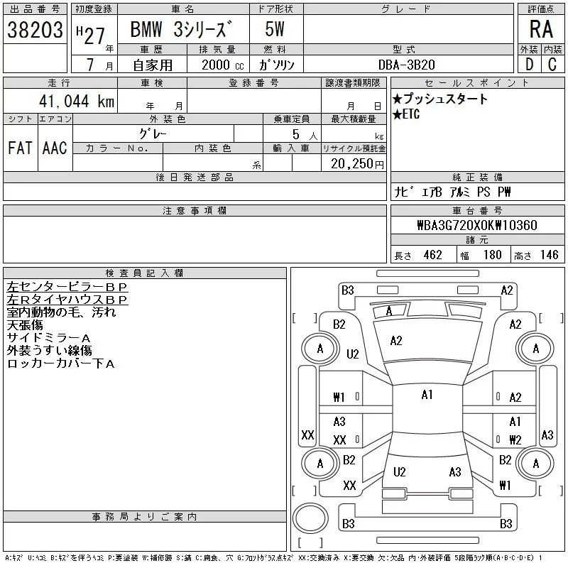 BMW 3-Series с аукциона Японии CAA Tokyo лот № 38203