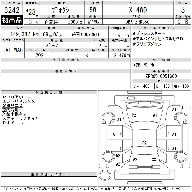 Toyota VOXY с аукциона Японии CAA Tohoku лот № 3242