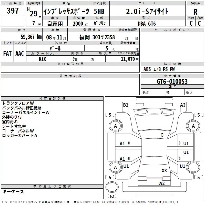 Subaru IMPREZA с аукциона Японии TAA Kyushu лот № 397