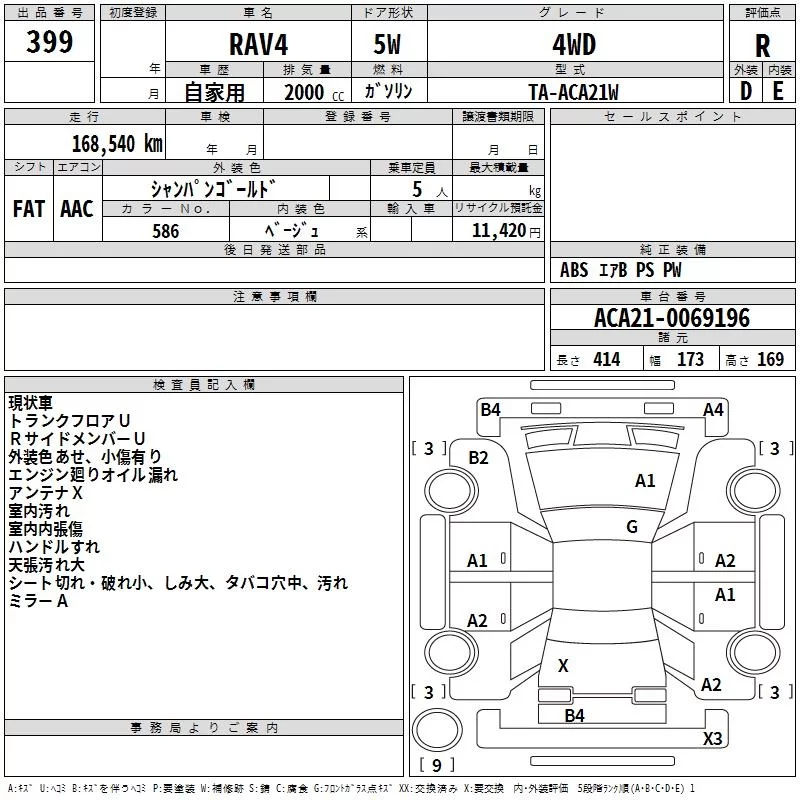 Toyota RAV4 с аукциона Японии TAA Kyushu лот № 399