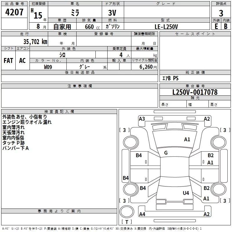 Daihatsu MIRA с аукциона Японии TAA Shikoku лот № 4207