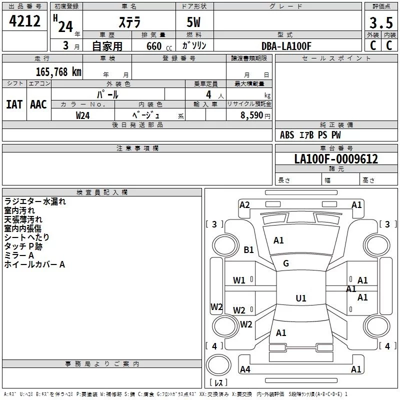 Subaru STELLA с аукциона Японии TAA Shikoku лот № 4212
