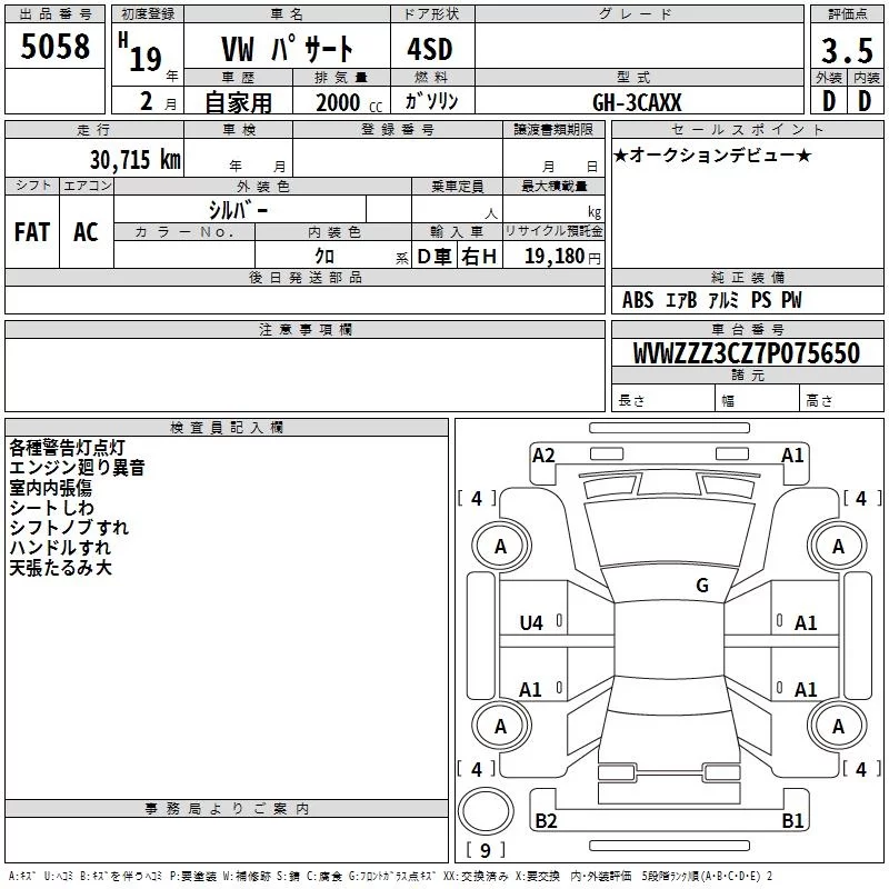 Volkswagen PASSAT с аукциона Японии TAA Kinki лот № 5058