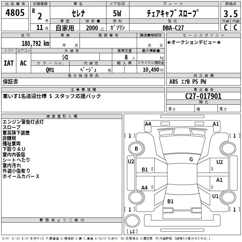 Nissan SERENA с аукциона Японии TAA Kinki лот № 4805