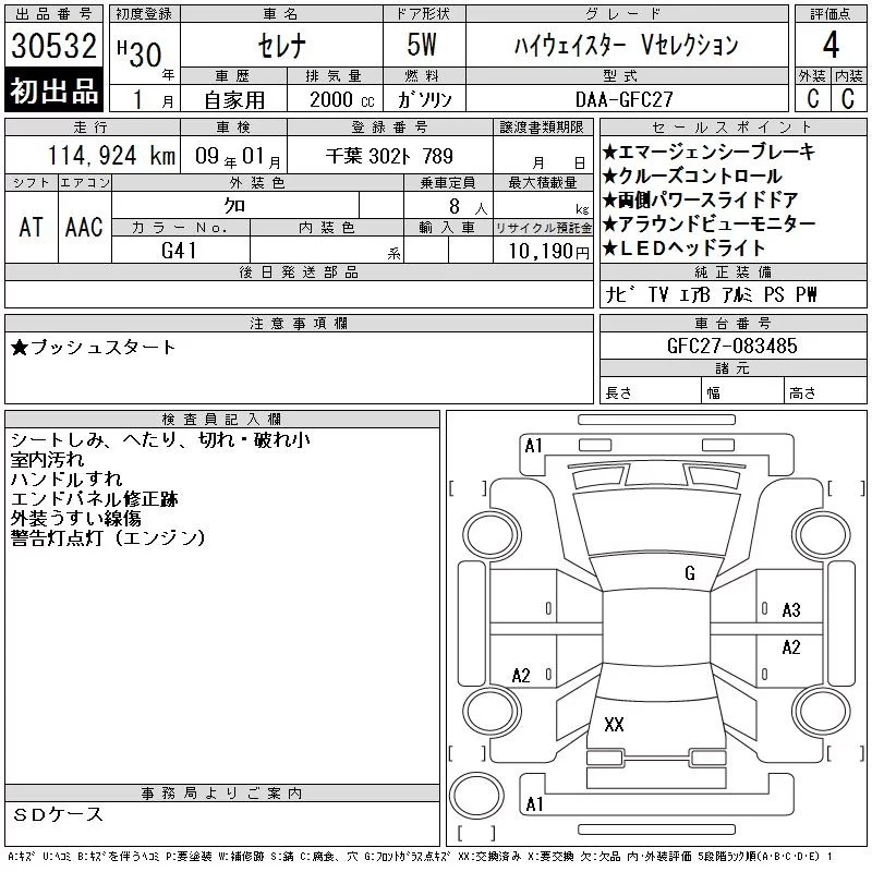 Nissan SERENA с аукциона Японии CAA Tokyo лот № 30532
