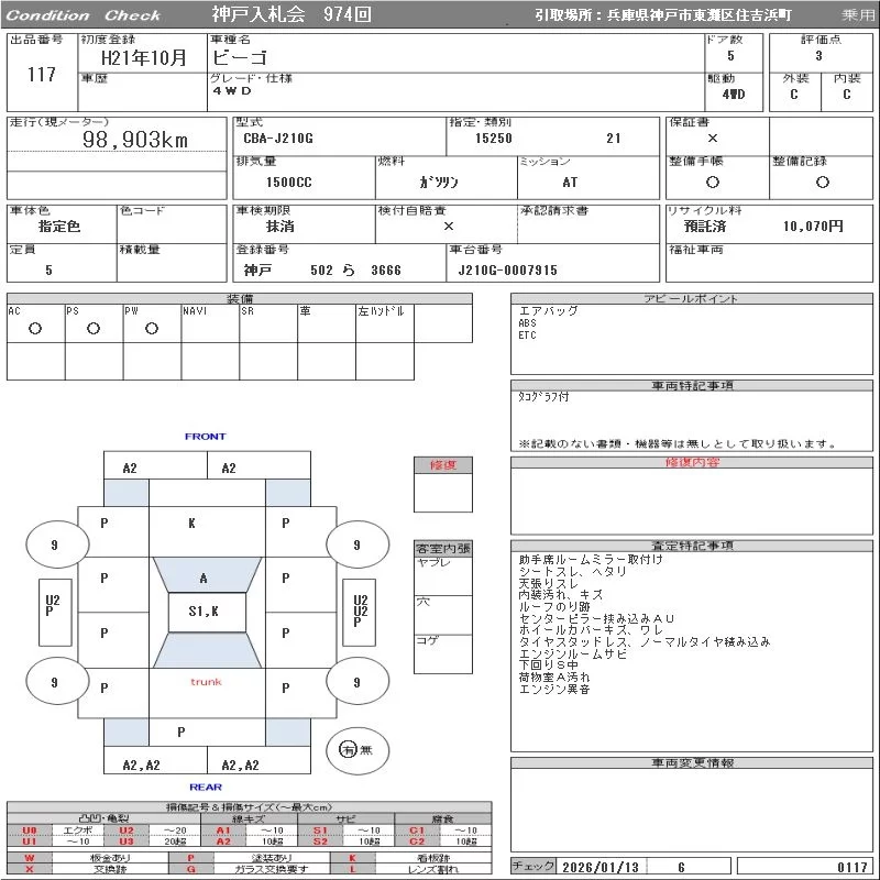Daihatsu Be-Go с аукциона Японии ORIX Kobe Nyusatsu лот № 117