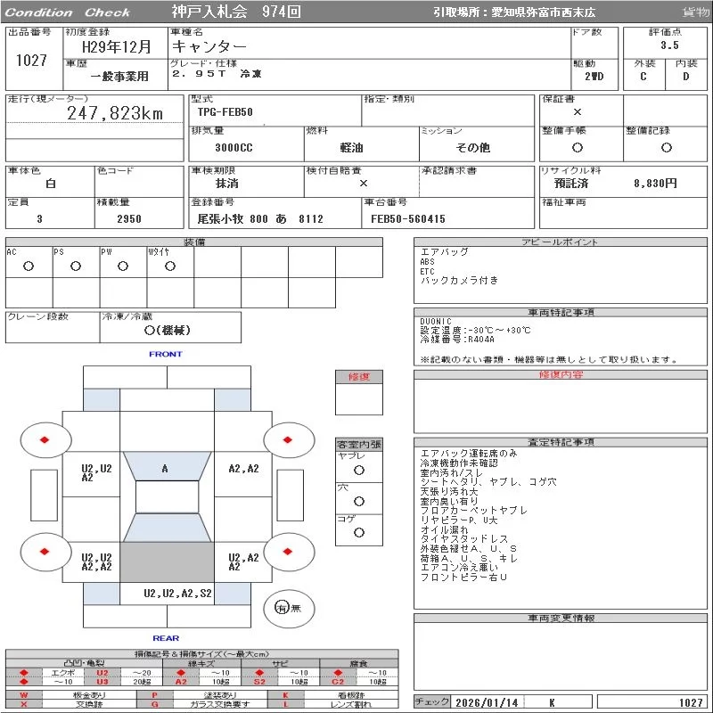 Mitsubishi CANTER с аукциона Японии ORIX Kobe Nyusatsu лот № 1027