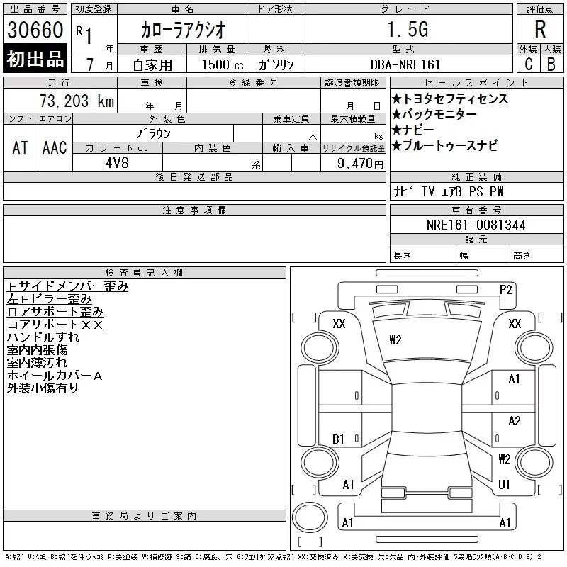 Toyota COROLLA AXIO с аукциона Японии CAA Tokyo лот № 30660