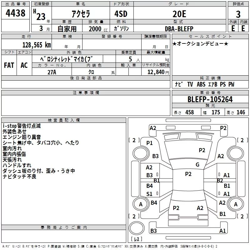 Mazda AXELA с аукциона Японии TAA Kyushu лот № 4438