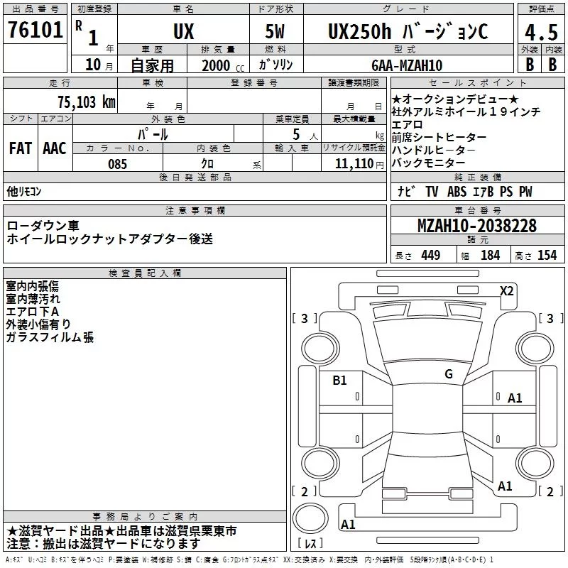 Lexus UX с аукциона Японии TAA Kinki лот № 76101