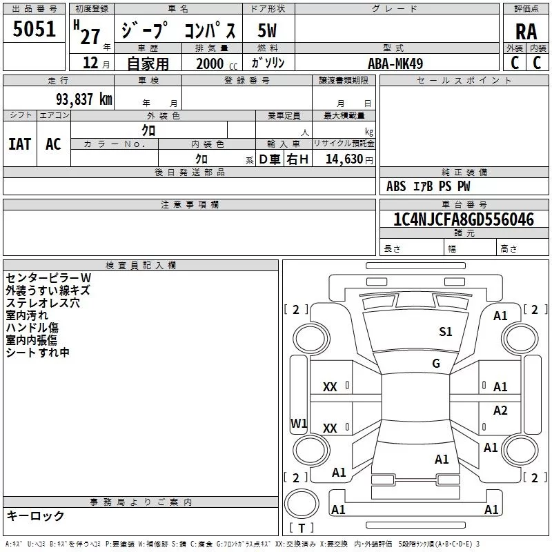 Chrysler JEEP COMPASS с аукциона Японии TAA Kyushu лот № 5051