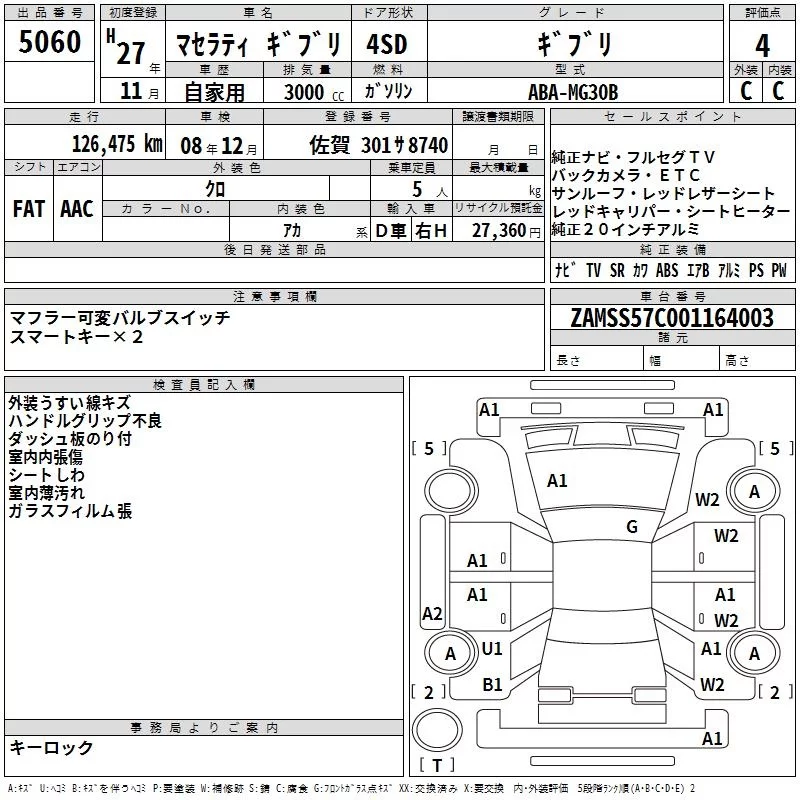 Maserati GHIBLI с аукциона Японии TAA Kyushu лот № 5060