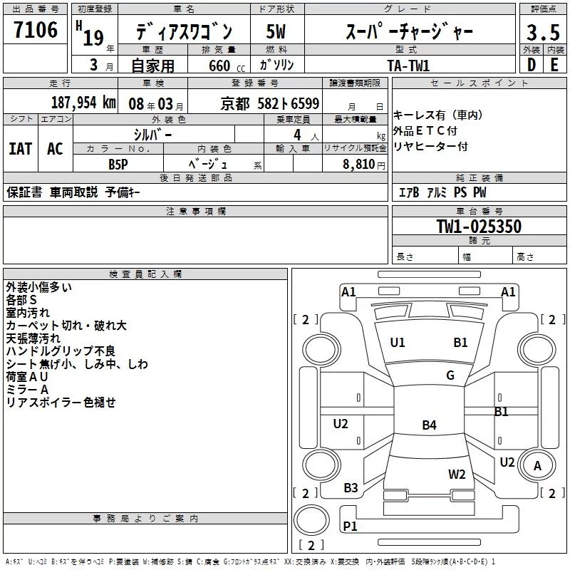 Subaru GOLF ALLTRACK с аукциона Японии TAA Kinki лот № 7106