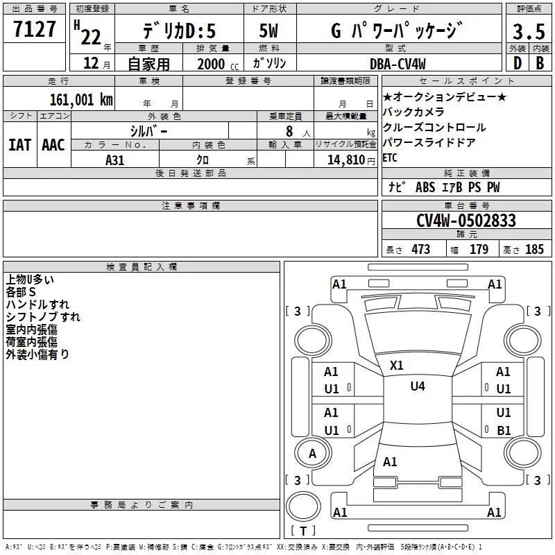 Mitsubishi DELICA D5 с аукциона Японии TAA Kinki лот № 7127