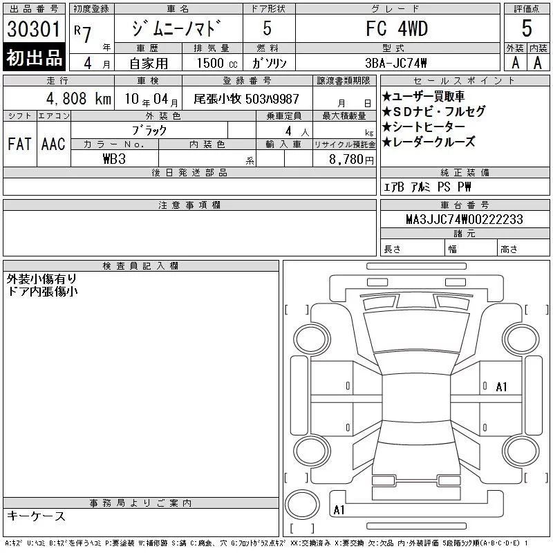 Suzuki JIMNY NOMADE с аукциона Японии CAA Chubu лот № 30301