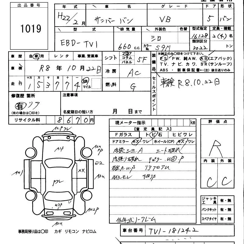 Subaru SAMBAR с аукциона Японии KCAA Minami Kyushu лот № 1019