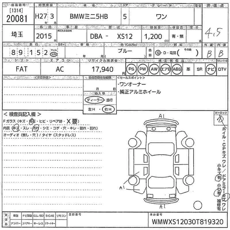 BMW MINI с аукциона Японии MIRIVE Saitama лот № 20081